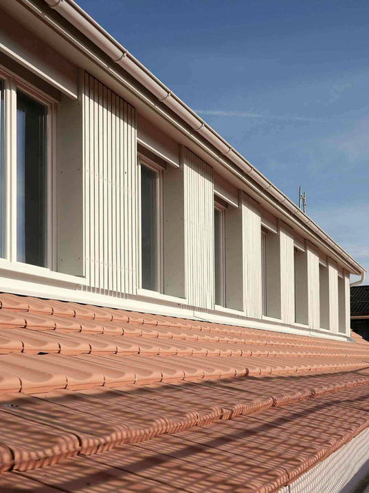 Das gesamte Hauptdach sowie die Gauben wurden bis auf die Sparren zurückgebaut und gemäss heutigen energetischen Standards neu aufgebaut und gedämmt.auben wurden bis auf die Sparren zurückgebaut und gemäss heutigen energetischen Standards neu aufgebaut und gedämmt.